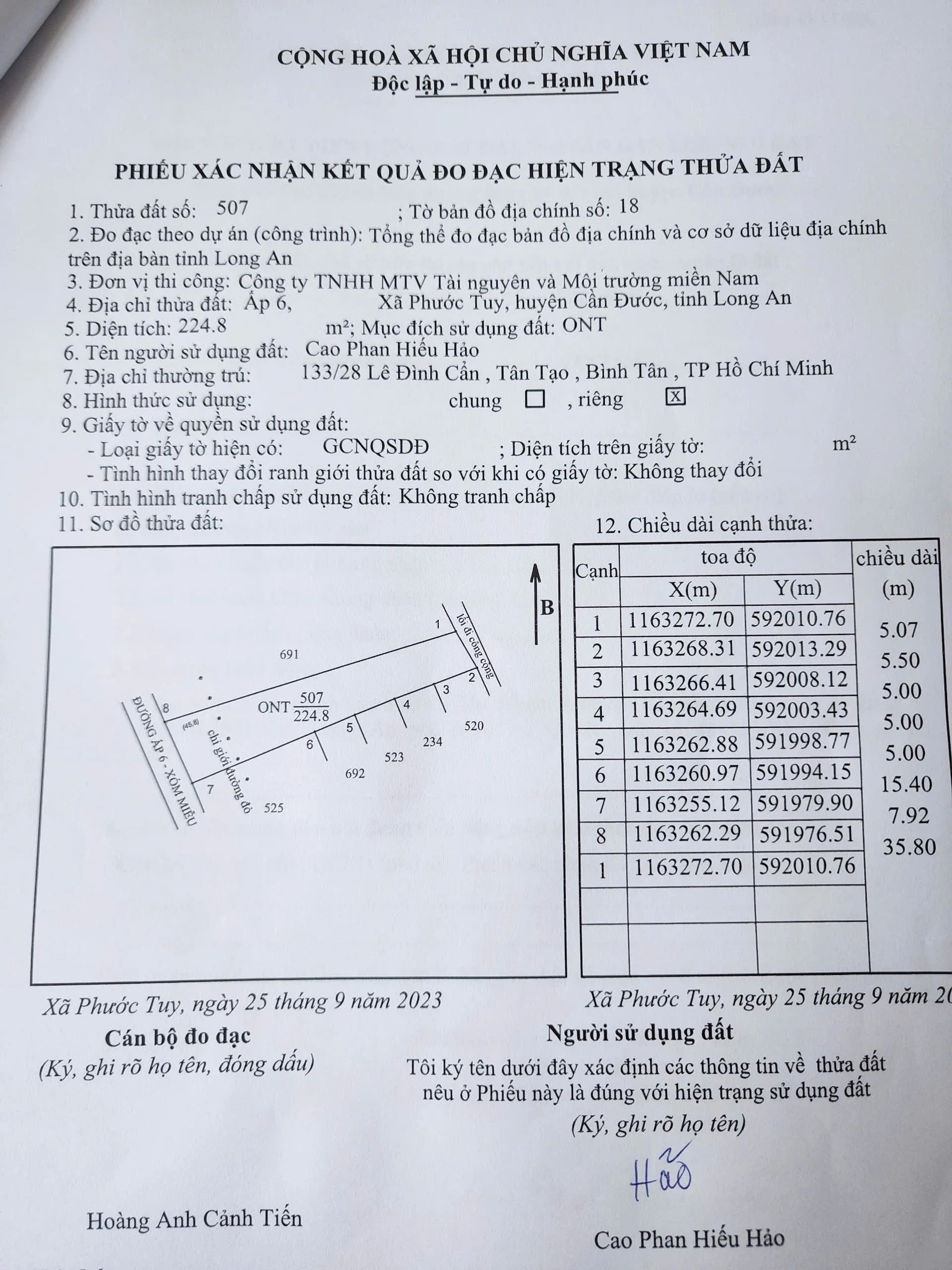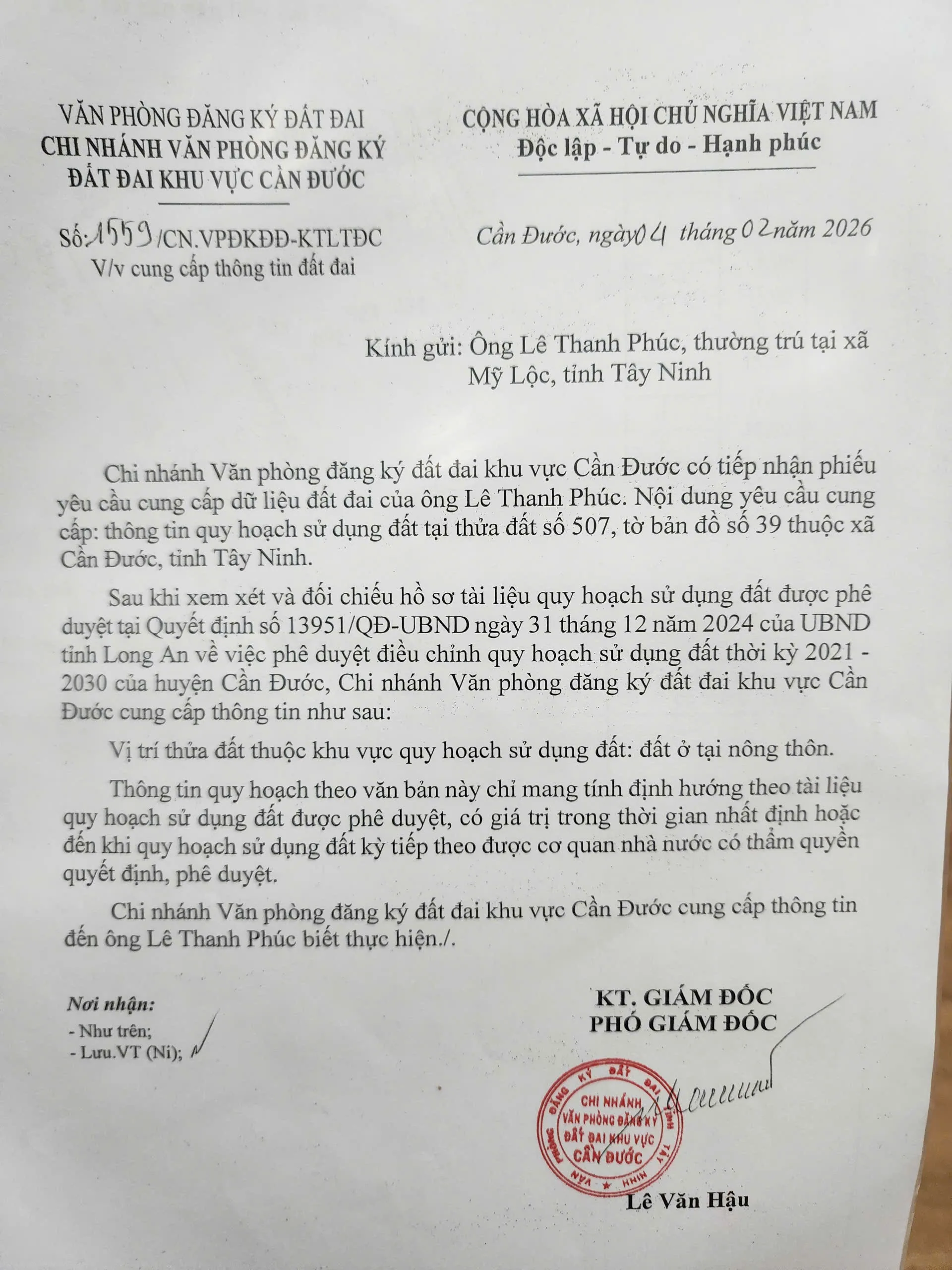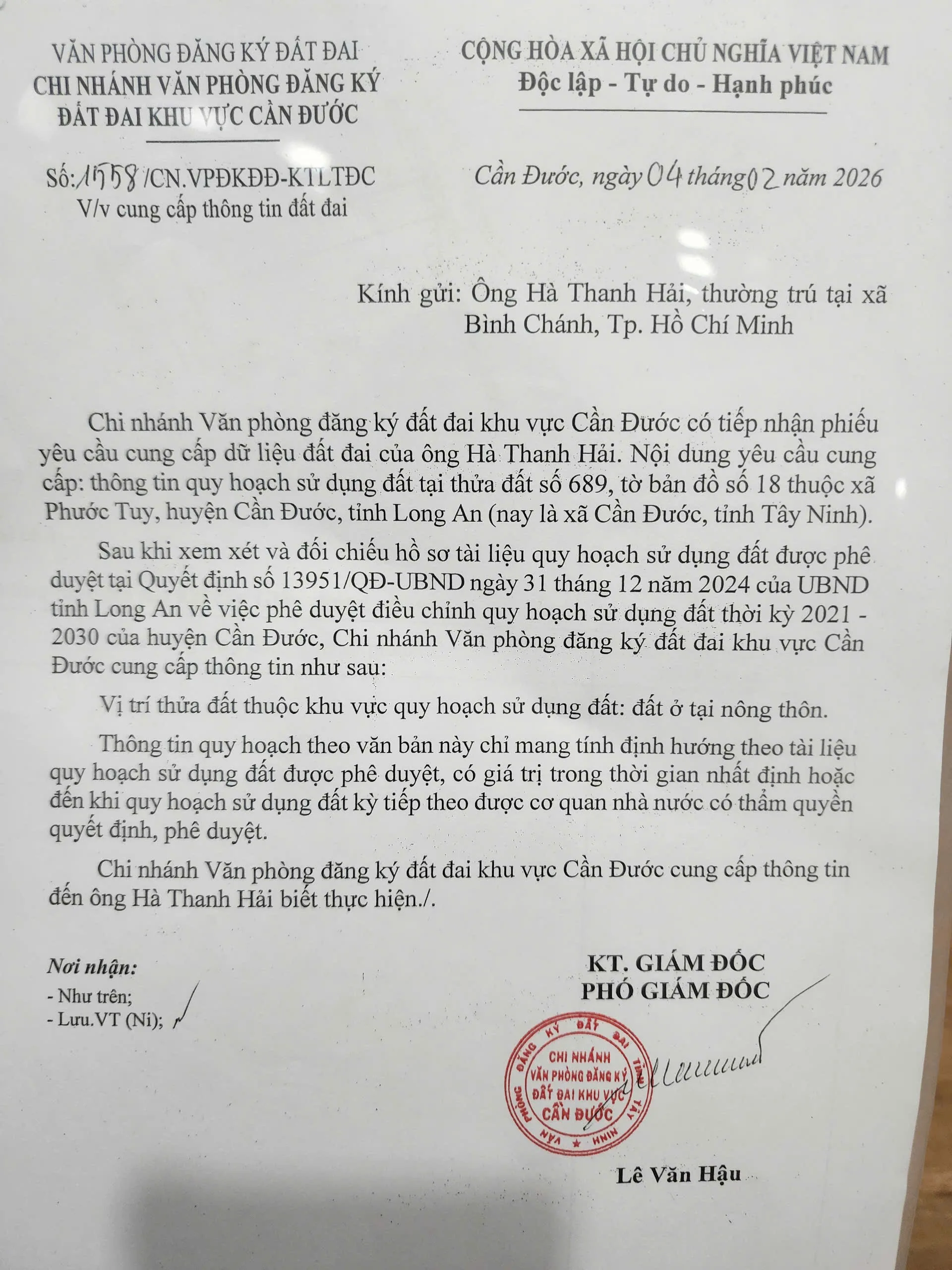 Gia chủ cần bán 4 lô nền đất tại xã Phước Tuy, Cần Đước, Long An (nay thuộc xã Cần Đước, tỉnh Tây Ninh mới)