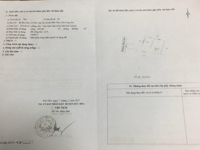 Cần bán lại tài sản gồm 1155m2 (diện tích hơn 1hecta; hơn 1ha; hơn 1 mẫu) đất và nhà kho mặt tiền đường Bầu Sen, xã Đức Lập Hạ, huyện Đức Hòa, tỉnh Long An: