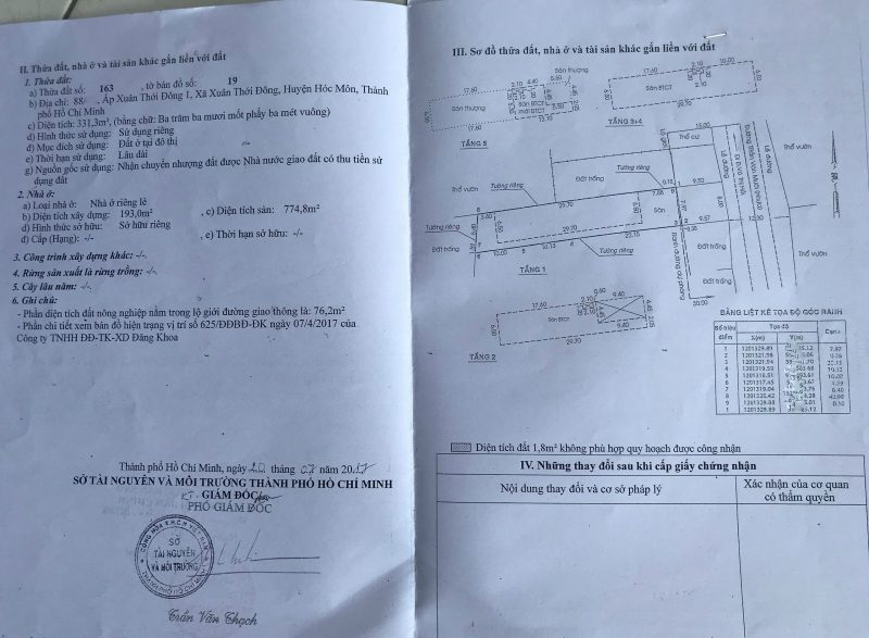 – Diện tích: 331,3 m2 , chiều ngang: 08m, chiều dài: 41m, kết cấu 1 trệt + 3 lầu, tổng diện tích sàn 774,8m2