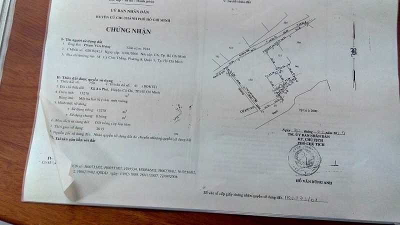 Bán thửa đất lớn tại xã An Phú, Củ Chi, diện tích 47000m2 = 4,7 hecta